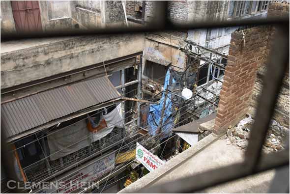 in Alt Delhi. Ich habe direkten Blick auf die Dächer Delhis und